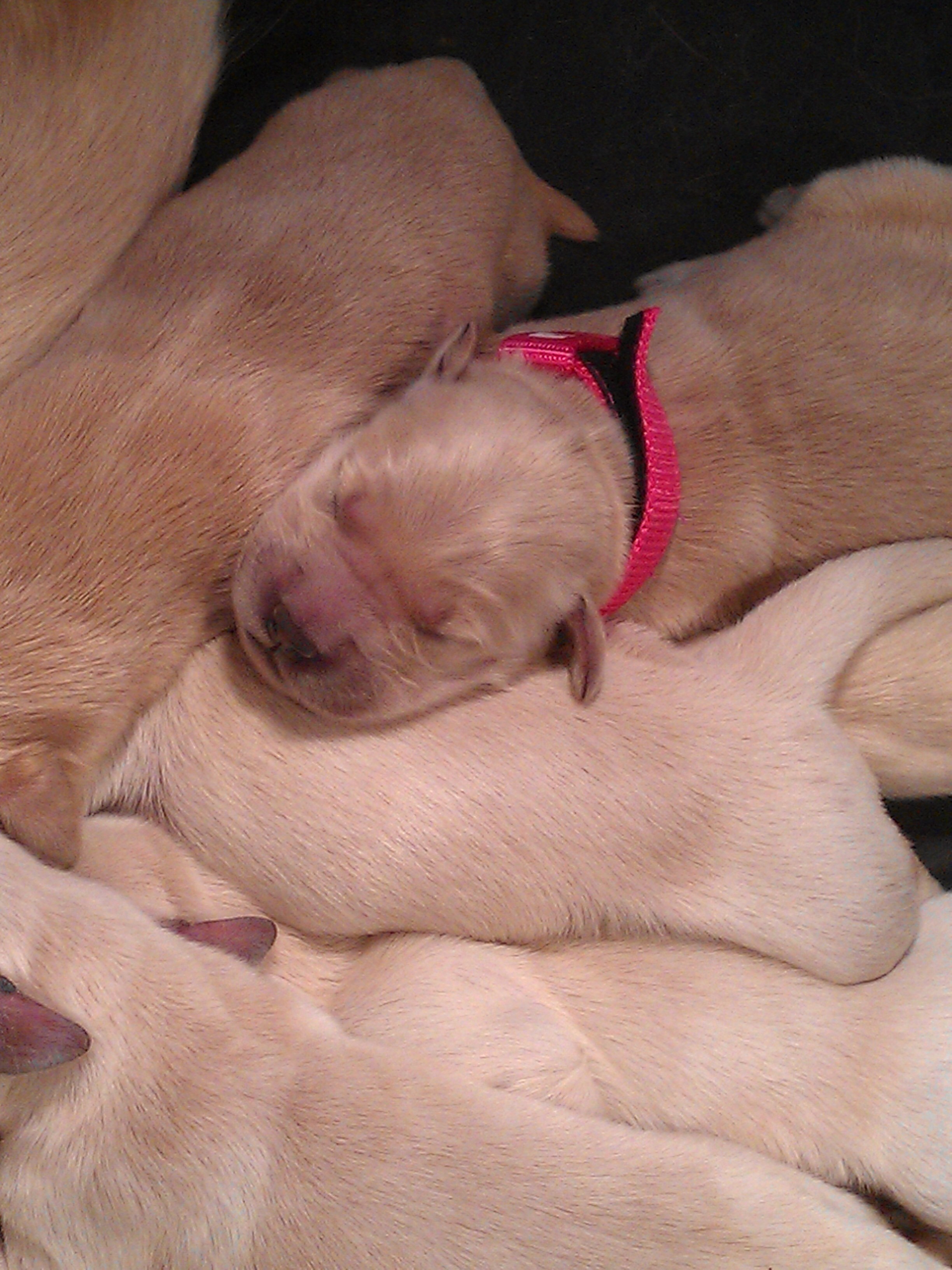 We’ve been waiting to hear from the breeder about the expected litter of puppies. They were due on Halloween but when I checked that weekend, they hadn’t come yet. By Saturday morning, we still had no word, so I emailed him. In the middle of the matinee of Jersey Boys, my phone started buzzing. When I checked my voice mail at intermission, we had the news we’d been waiting for. The puppies were born on Wednesday, Nov. 6. He’d somehow managed to misplace our contact information and only found it that morning after I emailed him. On Sunday afternoon we drove over to meet the new arrivals and pick which one will be coming home with us in eight weeks. I told my husband that because having a Golden has always been his dream, he should pick our new little love.
